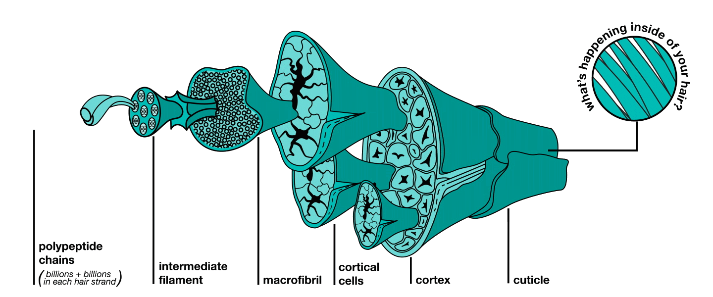 K18PEPTiDE". is a biotech-developed peptide that mimics hair's structure to reverse damage by reconnecting polypeptide chains and disulide bonds broker during damage from bleach + color, chemical services, and heat*